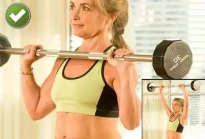 在健身房進(jìn)行杠鈴訓(xùn)練,提舉杠鈴時(shí),保持杠鈴或啞鈴在前。成站立姿勢(shì),杠鈴高于鎖骨,保持上身挺直。該訓(xùn)練也可采取坐姿進(jìn)行。坐直,脊椎自然彎曲,上背部靠緊椅背。