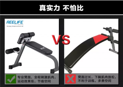 在訓練中,如果動作不夠標準很難到達該有的訓練效果!而此款訓練凳的專業(yè)設計,可以讓你的動作專業(yè)有效,這主要得益于REELIFE(銳飛)健身器材的 BR100 腹背多功能訓練凳專業(yè)實用的凳面長度!與市場上大多數(shù)的腹肌訓練凳相比: