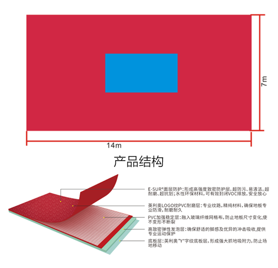 英利奧 5.0mm 紅色 LOGO紋PVC運動地板