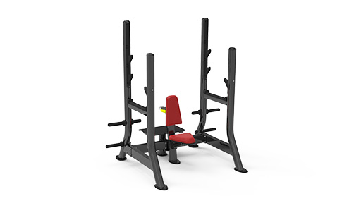 RT系列 RTOMB 奧林匹克推肩椅提供1個前位杠鈴掛鉤、1個中位水平杠、2個后位杠鈴掛鉤,所有杠鈴下落部位和鉤體、杠面均采用TPU高耐磨、抗沖擊材質熱注成形包覆,保護杠鈴桿表面免受磨損并且減少噪音。提供6支閑置杠鈴片存儲棒。